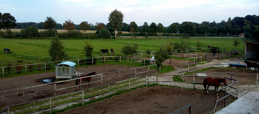 Zusätzlich stehen weitere Offenstallplätze für Ponys, sowie weitere Weideflächen zur Verfügung.