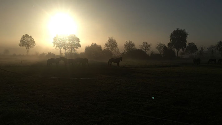 Natürlich werden auch diese Pferde täglich von uns auf die Wiese/aufs befestigte Paddock mit Raufe gebracht. Momentan haben wir hier eine kleine gemischte Herde.